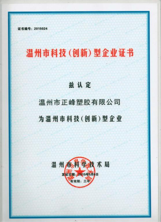 温州市科技(创新)型企业证书
