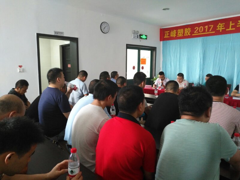 8月12日下午,正峰塑胶全体员工在公司召开2017上半年工作总结会议。会上,总经理和各部门经理对公司上半年的运行和工作情况进行了总结,以及对存在的问题和需要改进的地方进行分析,为圆满完成全年任务目标打好了基础。(王甫)