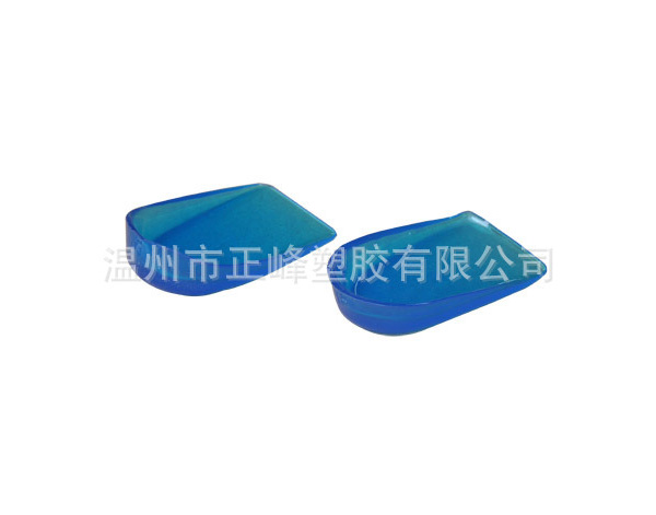 后跟垫主要起到减震和增高的作用。制品一般厚度在5~20mm,材料硬度15~35度,考虑与鞋底的粘合性,可采用SBS基材改性之TPR透明料。